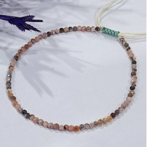 Natural stone bracelet with small brown and neutral beads and an adjustable cord closure. Lightweight everyday style with a soft earthy finish.