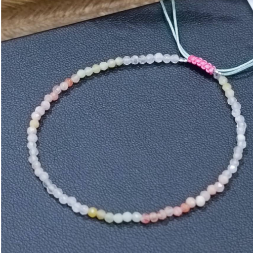 Natural stone bracelet with small pastel multicolor beads on an adjustable cord. Lightweight everyday style with a soft playful finish.