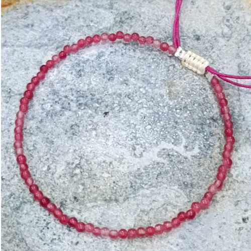 Natural stone bracelet with small rosy pink beads on an adjustable cord. Lightweight everyday style with a delicate polished finish.