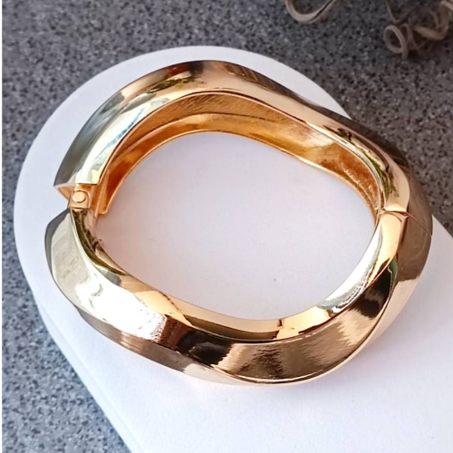 Alloy bracelet with a chunky rounded link silhouette in a polished gold tone finish. Bold statement style with a sculptural modern look.