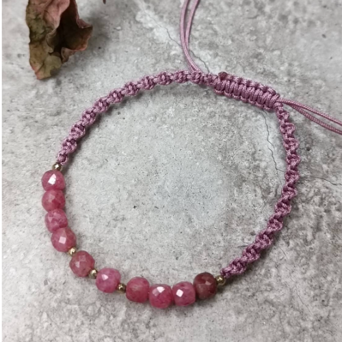 Natural stone bracelet with rose pink faceted beads on an adjustable cord. Lightweight everyday style with a soft polished finish.