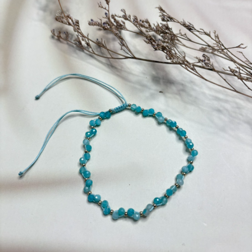 Adjustable stone bracelet with Larmiar. Calming stone peace, emotional healing, gentle communication.