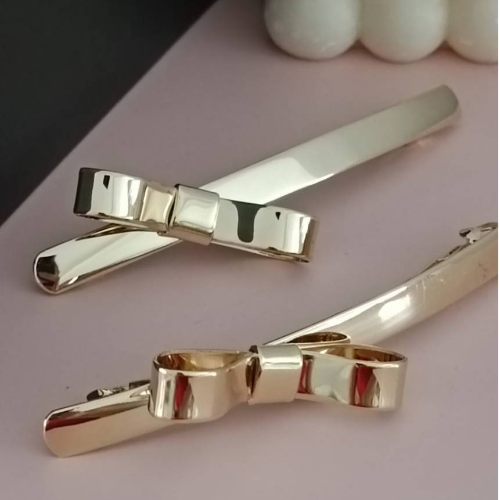 Alloy hair clip set with two polished gold snap clips. Minimal everyday accessories with a clean modern finish.