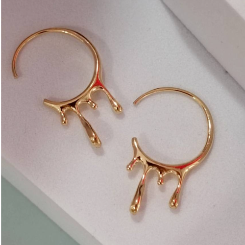 Alloy hoop earrings with slim gold tone hoops and tiny pearl dangles. Lightweight statement pair with a delicate polished finish.