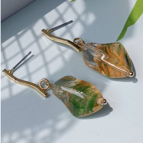 Acrylic drop earrings with faceted green marquise shapes and gold tone hooks. Lightweight statement pair with a fresh polished finish.