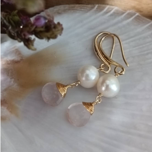 Pearl drop earrings with blush pink teardrop accents and a soft feminine finish. Lightweight statement pair for dressy styling.