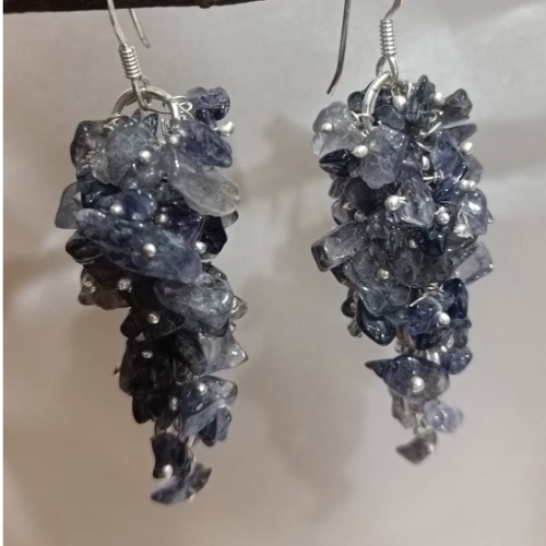 Natural stone earrings with clustered purple stone chips in a cascading drop design. Bold statement pair with rich texture.