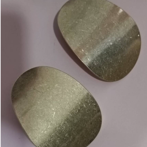 Alloy hoop earrings with long ribbon like oval shapes in a polished gold tone finish. Lightweight statement pair with a sleek modern look.
