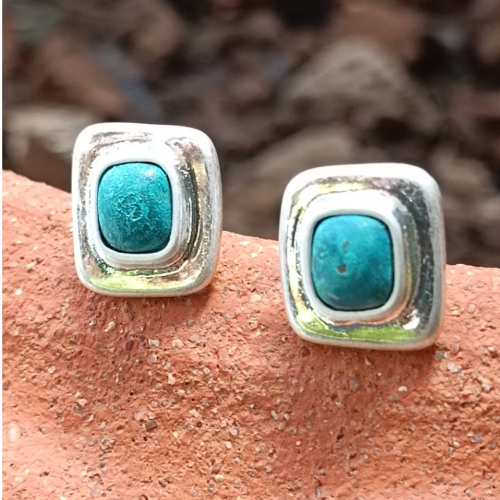 Turquoise Square Stone Stud Earrings