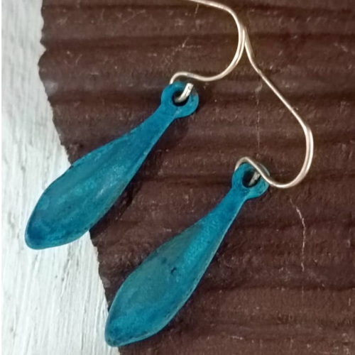 Alloy drop earrings with turquoise teardrop outlines and slim hook fittings. Lightweight statement pair with a fresh artisanal look.