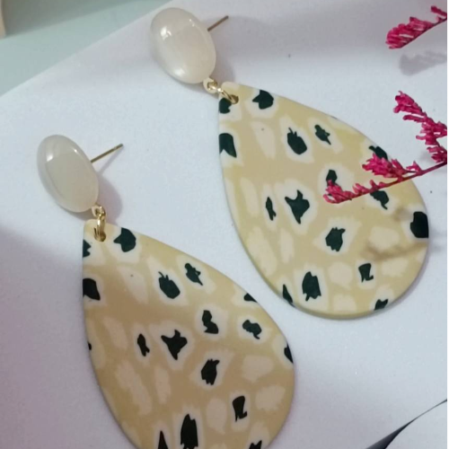 Coloured Clay teardrop earrings bead tops. Lightweight statement pair with a playful handcrafted look.