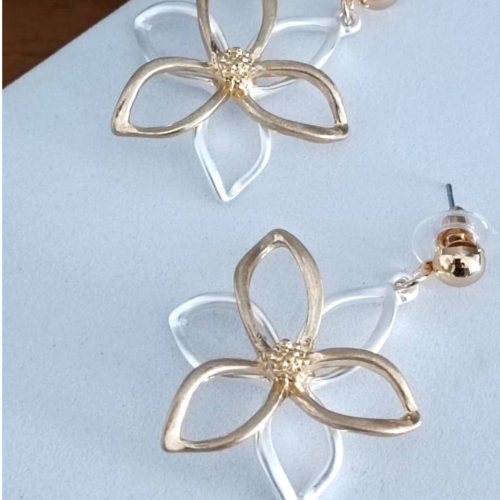 Alloy drop earrings with open petal flower outlines in mixed silver and gold tones. Lightweight statement pair with a clean sculptural look.