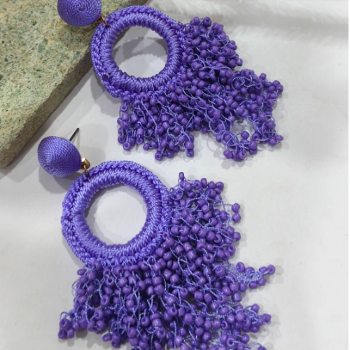 Handcrafted with shimmering Miyuki beads and soft wool thread, these purple earrings glow like moonlight—mysterious, elegant, and softly romantic.