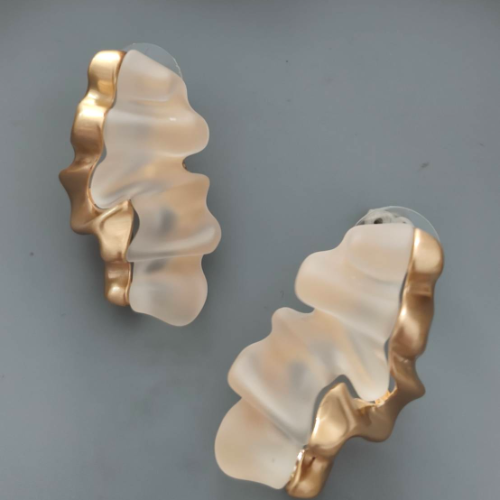 Acrylic threader earrings in a gold finish with spiral wire silhouettes. Sleek statement pair with a clean contemporary line.