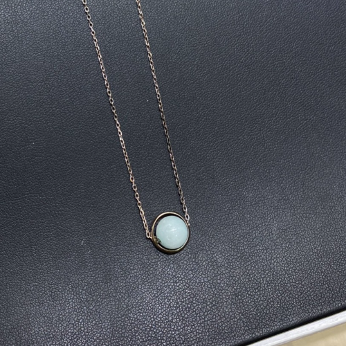 Natural stone necklace with a small aqua oval pendant on a delicate gold tone chain. Minimal everyday style with a soft luminous finish.