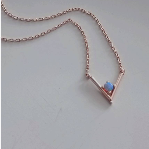 A curved arc pendant accented by a small aqua stone. Timeless Elegance.