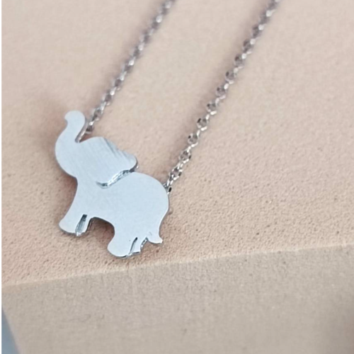 Stainless steel necklace with a small elephant charm in a polished silver tone finish. Minimal everyday style with a playful polished look.