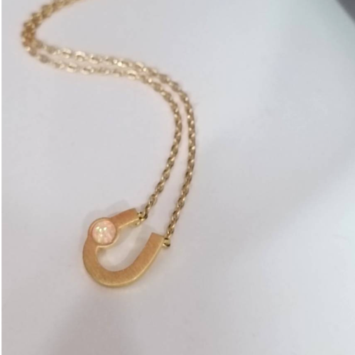 Sophisticated necklace with a horseshoe pendant and a pearl like center accent. Minimal everyday style with a clean polished finish.