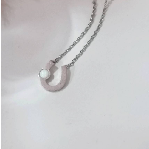 Natural stone necklace with a horseshoe pendant and a pearl like center accent. Minimal everyday style with a clean polished finish.