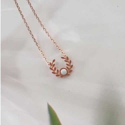 A curved sunburst pendant accented by a turquoise style crystal. Minimal everyday style with a warm polished finish.