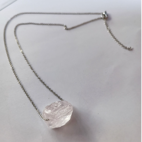 Natural stone necklace with a raw clear quartz pendant on a fine silver chain. Delicate statement piece with an organic finish.