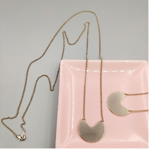 Alloy necklace with a smooth rose gold crescent pendant on a fine chain. Minimal everyday piece with a clean modern finish.