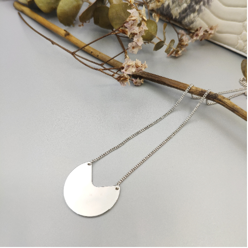 Alloy necklace with a smooth silver crescent pendant on a fine chain. Minimal everyday piece with a clean modern finish.