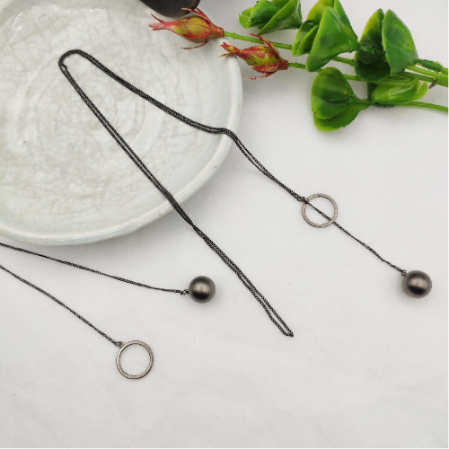 Black Cord Bar Pendant Necklace