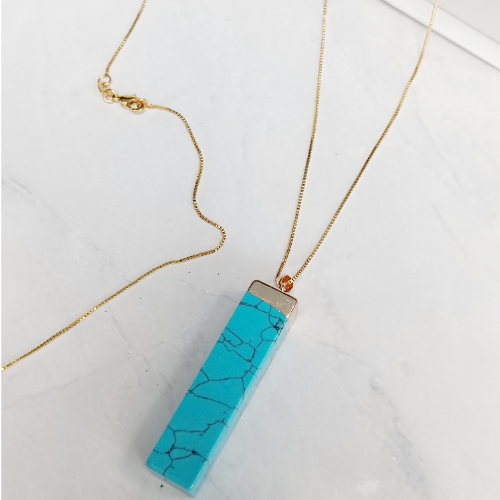 Locket necklace with a white rectangular resin pendant capped in gold. Minimal longline piece with a clean polished look.