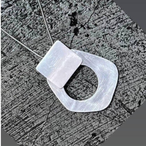 Alloy necklace with circular and bar elements in a polished silver finish. Modern statement style with clean geometric detail.