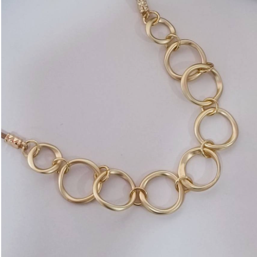 Alloy necklace with oversized open circle links in a polished gold tone finish. Statement style with a clean geometric look.