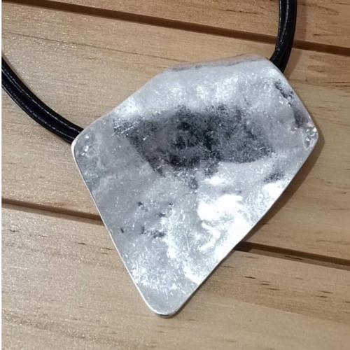 Alloy necklace with a faceted silver tone geometric pendant on a simple chain. Statement style with a clean artistic finish.