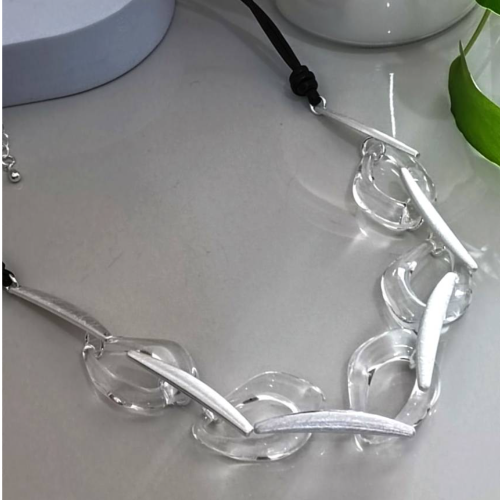 Alloy necklace with oversized irregular links in a polished silver tone finish. Bold statement style with a sculptural modern look.