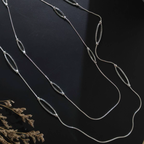 A classic silver chain with clean, linked details. Simple, timeless, and easy to wear every day.