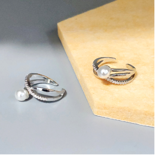 Silver Pearl Bypass Ring