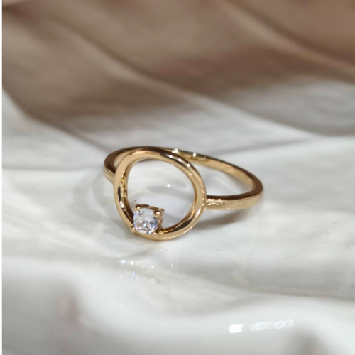 Natural stone ring with a milky white oval stone set on a slim gold tone open band. Delicate statement style with a clean luminous finish.