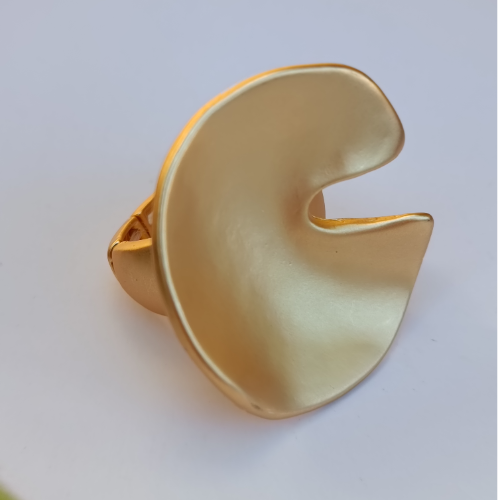 Alloy ring with a large brushed gold disc and curved cutout detail. Bold statement piece with an artistic modern look.
